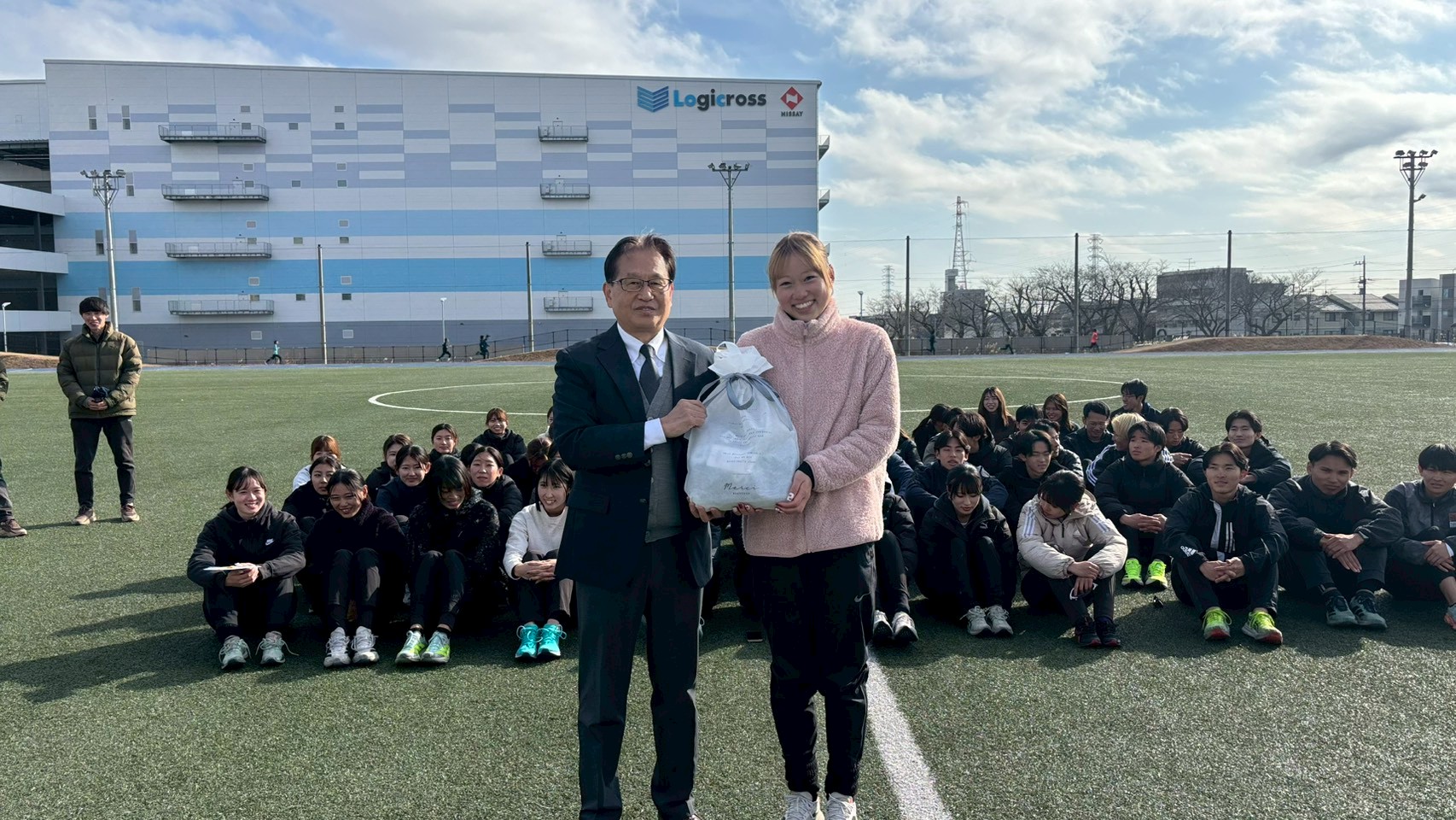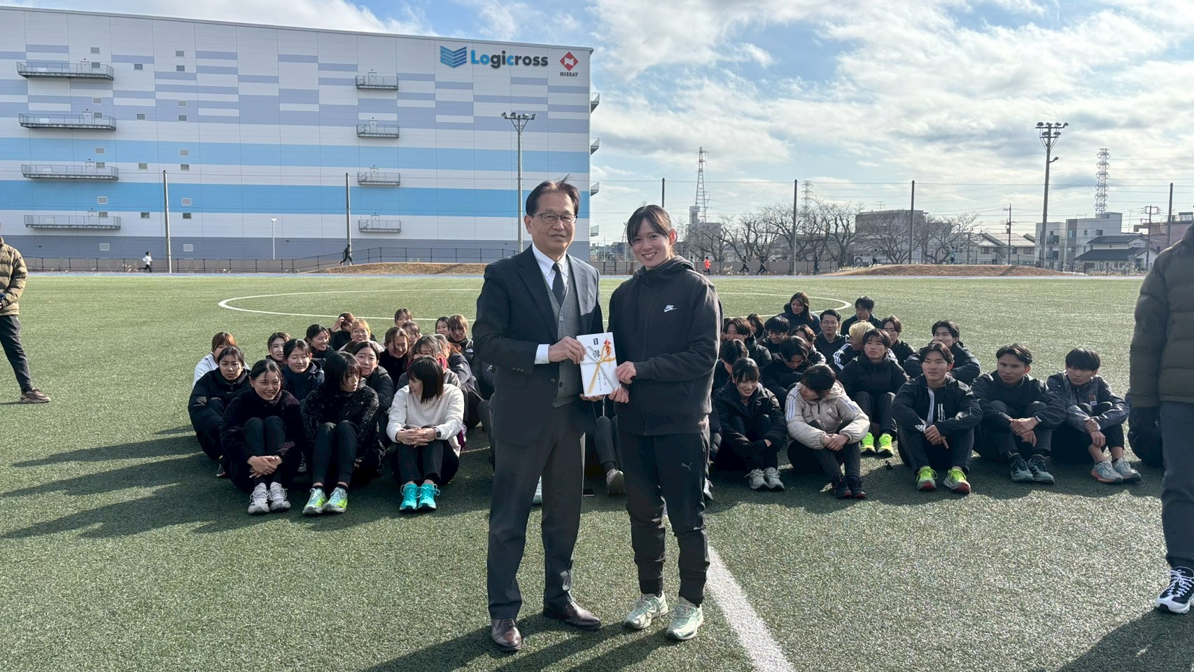 また、関東インカレ優勝を果たした杉本心結さん、そして関東インカレ・日本インカレの両大会で優勝という輝かしい成績を収めた大塚葉月さんには、お祝いの品を贈呈しました。